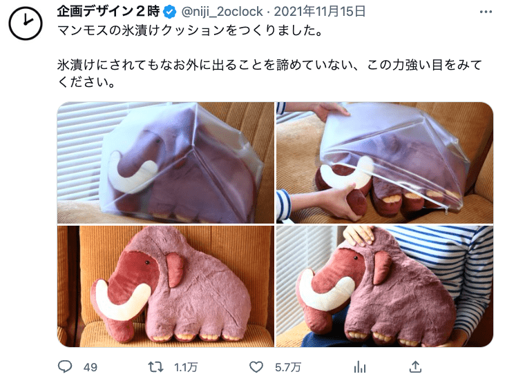 完成した商品のPRの他に「売れるかはわからないけど面白い!」と思うアイデアを実験的に公開する場としても、Twitterを活用しています。